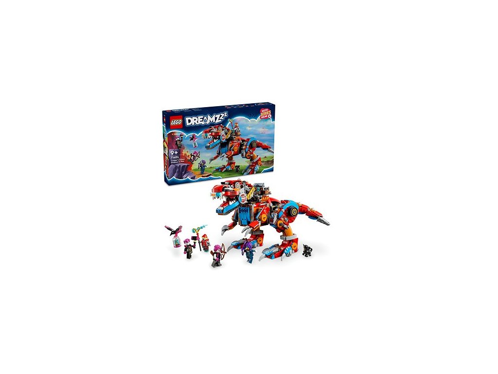 LEGO stavebnice - pro děti, vhodné od 9 let, řada LEGO® DREAMZzz, rok uvedení 2024, balení obsahuje 917 dílků LEGO® DREAMZzz™ 71484 Cooper a jeho robotický dinosaurus C-rexZáchrana věžeSandmanova věž je fuč. Ukradli ji padouši z nočních můr. Získej ji zpět díky akční figurce T-Rexe nebo pterodaktyla.Děsiví dinosauřiHroziví LEGO® dinosauři se chlubí cvakajícími čelistmi, pohyblivou hlavou, děsivým ocasem a dvěma vystřelovači.LEGO® DREAMZzz™Ovládej svět svých nejdivočejších snů s řadou LEGO® DREAMZzz™, která naplno popustí uzdu tvé fantazie.917kostek9+doporučený věkNávodje součástí baleníLEGO® DREAMZzz™ 71484 Cooper a jeho robotický dinosaurus C-rexPadouši odnesli Sandmanovu věž a uvěznili ji ve sklenici snů. Pomoz Zoey a Cooperovi získat ji zpět. Použij Cooperovo LEGO® vrakoviště a postav z něj figurku T-rexe nebo pterodaktyla. Těchto ještěrů se bude bát každý!Nebezpeční dinosauřiDinosauři jsou jako živí. Mají pohyblivou hlavu, cvakající čelisti, dvojité vystřelovače a děsivý ocas. Zoey a Cooper se snadno posadí do auta na dinosauřích zádech. Temní dvojníci Doey a Dooper ještě více zpestří celý fantasy příběh.DREAMZzz™Řada stavebnic vychází z populárního seriálu LEGO® DREAMZzz™. Zapoj svou kreativitu a fantazii, inspiruj se dějem příběhu, ovládej své sny a vysni si nové skvělé bytosti, vozidla a další věci.Ostatní vlastnosti LEGO® DREAMZzz™ 71484 Cooper a jeho robotický dinosaurus C-rex Stavebnice inspirovaná seriálem LEGO® DREAMZzz™ Nabízí perfektní zážitek při stavění Rozvíjí kreativitu a podporuje fantazii Procvičuje jemnou motorikuObsah balení stavebnice LEGO: Dinosaurus 4 minifigurky - Zoey, Cooper, Doey a Dooper Doplňky NávodVýška T-rexe:18 cmDoplňkové parametry