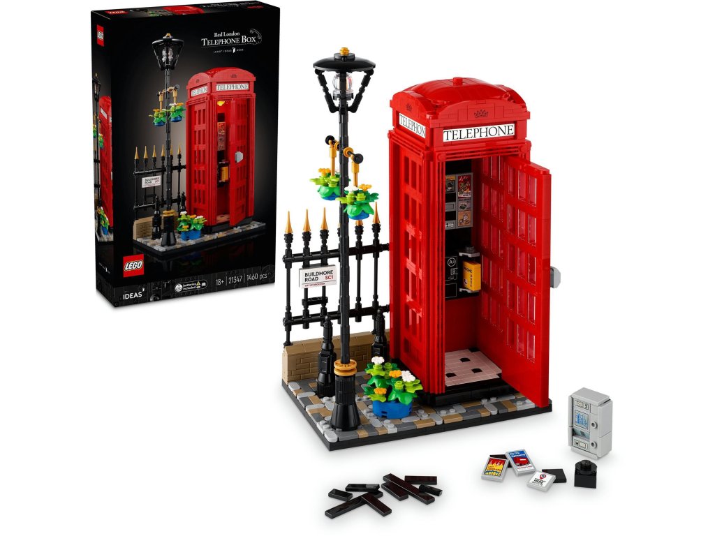 LEGO stavebnice - pro dospělé, vhodné od 18 let, řada LEGO® Ideas, rok uvedení 2024, balení obsahuje 1460 dílků LEGO® Ideas 21347 Červená londýnská telefonní budkaSestav londýnskou telefonní budkuPostav si propracovaný model klasické červené londýnské telefonní budky, který tě nadchne. Dvě verze telefonu do budkyPotom sestav vintage telefon s otočným číselníkem nebo telefon ve stylu 80. let a umísti ho do budky.Originální stavebniceStavebnice LEGO Ideas jsou zcela výjimečné a unikátní, z různých oblastí světa.1460kostek18+doporučený věkNávodsoučástí baleníLEGO® Ideas 21347 Červená londýnská telefonní budkaStisknutím tlačítka na střeše budky rozsvítíš světelnou LEGO kostku, která osvětlí telefonní budku. Model telefonní budky můžeš ozdobit dlážděnou ulicí i lampou se závěsnými košíky na květiny.Skvěle doplní výstavkuNezapomeň k telefonní budce umístit také plot, který ti může současně posloužit jako stojánek na mobilní telefon. Jakmile budeš mít vše hotové, postav model na tvoji výstavku, kde se bude parádně vyjímat. LEGO® IdeasSoučástí kolekce LEGO® Ideas jsou nápady a návrhy samotných nadšenců stavebnic LEGO. Každý může navrhnout svoji originální stavebnici na jakékoli téma.Ostatní vlastnosti LEGO® Ideas 21347 Červená londýnská telefonní budka Stavebnice nabízí nápady a návrhy samotných fanoušků stavebnic LEGO Procvičuje jemnou motoriku Skvělá zábava pro děti i dospěléObsah balení stavebnice LEGO: Kostky k sestavení NávodRozměry:31 × 19 × 15 cmDoplňkové parametry