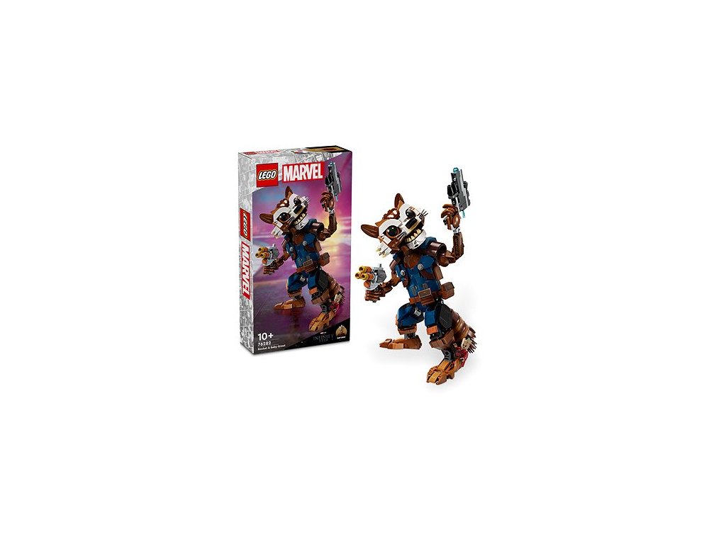 LEGO stavebnice - pro děti, vhodné od 10 let, řada LEGO® Marvel, rok uvedení 2024, balení obsahuje 566 dílků LEGO® Marvel 76282 Rocket a malý GrootLEGO® figurka RocketaVelká LEGO® figurka Rocketa láká k akční hře i k vystavení. Jde o realistické zpracování podle filmu Strážci galaxie.Vybavený RocketRocket potěší pohyblivými klouby. V ruce drží blaster a pružinový vystřelovač. Na rameni mu sedí minifigurka Groota.Úžasný svět plný superhrdinůPoznej svět LEGO® superhrdinů a vžij se do role postav, jako je Spiderman, Ironman, Superman, Batman či Hulk.566kostek10+doporučený věkNávodje součástí baleníLEGO® Marvel 76282 Rocket a malý GrootRealisticky zpracovaná figurka Rocketa upomíná na marvelovský film Strážci galaxie. Hodí se nejen ke skvělé hře, ale také k vystavení, aby všichni tví kamarádi viděli, kdo je tady opravdový fanoušek superhrdinů.Propracovaný LEGO® RocketFigurka Rocketa tě nadchne plně pohyblivými klouby (kromě loktů) a blasterem i pružinovým vystřelovačem. Na Rocketovo rameno můžeš posadit minifigurku jeho kamaráda Groota. Tato LEGO® stavebnice inspiruje k prožívání parádních akčních příběhů.LEGO® Super HeroesObjev svět filmových hrdinů s LEGO Super Heroes! S figurkami Spidermana, Ironmana, Supermana, Batmana, Hulka a ostatními superhrdiny si můžeš postavit i vlastní komiks a vžít se role svých oblíbených postav.Ostatní vlastnosti LEGO® Marvel 76282 Rocket a malý Groot LEGO stavebnice nabízí úžasný svět superhrdinů Umožní dětem sestavit si svůj vlastní komiks Rozvíjí kreativitu a podporuje fantazii Procvičuje jemnou motorikuObsah balení stavebnice LEGO: Figurka Rocketa Minifigurka Groota Doplňky NávodVýška figurky:22 cmDoplňkové parametry