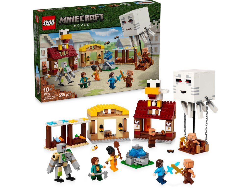 LEGO stavebnice - pro děti, vhodné od 10 let, řada LEGO® Minecraft®, rok uvedení 2025 - novinky, balení obsahuje 555 dílků LEGO® Minecraft® 21273 Balón v podobě ďasa a útok na vesniciPiglini útočíDávej pozor! Piglini útočí na vesnici ze svého balónu v podobě ďasa. Dávej si pozor!U fontány na hlavním náměstí už stihli odpálit disk. Tak si pospěš, ať nezničí celou vesnici.Rozvíjí kreativituStavebnice LEGO® Minecraft® rozvíjí u dětí i dospělých kreativitu, motoriku i představivost.555kostek10+doporučený věkMinecraftmodelová řadaLEGO® Minecraft® 21273 Balón v podobě ďasa a útok na vesniciVyužij všechny své dovednosti z Minecraftu i pomoc železného golema a zkus zachránit zbytek vesnice, a to včetně Steveovy restaurace se smaženým kuřecím masem a chaty na tvoření.Dobrodružství čekáBalón v podobě ďasa nabízí prostor na pigliny a vystřelovač disků. Součástí vesnice jsou stánky z trhu, Steveova restaurace, chata na tvoření i fontána, kterou pomocí vestavěného prvku můžeš vyhodit do povětří. Na střeše restaurace nechybí velký model slepice s funkcí snášení vajec. Čeká na tebe parádní dobrodružství.LEGO® Minecraft®Stavebnice LEGO® Minecraft® byly vytvořeny podle slavné počítačové hry Minecraft. Umožňuje vytvořit vlastní 3D svět plný krychliček. Dětem i dospělým nabízí skvělou zábavu, rozvíjí jejich kreativitu i představivost.Ostatní vlastnosti LEGO® Minecraft® 21273 Balón v podobě ďasa a útok na vesniciStavebnice inspirována populární hrou MinecraftRozvíjí kreativitu a podporuje fantaziiProcvičuje jemnou motorikuSkvělá zábava pro malé i velké dětiObsah balení:Kostky k sestavení4 minifigurky - Steve, Natalie, Dawn a vesničan2 pigliniPohyblivá figurka železného golemaDoplňkyNávodVýška balónu:18 cmDoplňkové parametry
