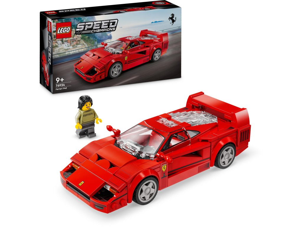 LEGO stavebnice - pro děti, vhodné od 9 let, řada LEGO® Speed Champions, rok uvedení 2024, balení obsahuje 318 dílků LEGO® Speed Champions 76934 Superauto Ferrari F40Model k výročíPostav si model Ferrari F40, který byl stylově navržen na 40. výročí slavné automobilky.Designové prvkyModel Ferrari se pyšní řadou autentických prvků. Objev typický zadní spoiler i červená sedadla.Pro milovníky autS LEGO® Speed Champions můžeš poznávat značky aut, připravovat je na závod a vychutnávat si vítězství.318kostek9+doporučený věkSpeed Championsmodelová řadaLEGO® Speed Champions 76934 Superauto Ferrari F40Užij si krásu slavného modelu, který byl navržen ke 40. výročí automobilky Ferrari. Byl také posledním modelem, který osobně schválil zakladatel firmy Enzo Ferrari. Užij si designové prvky inspirované skutečným modelem, posaď za volant figurku a pusť se do závodění s tímto ikonickým vozem.Známá červenáFerrari F40 tě nadchne řadou autentických prvků. Všimni si typického zadního spoileru, přídě, koncovek výfuku, ráfků, prvků přívodu vzduchu i interiéru s palubní deskou, ruční brzdou, řazením, volantem a klasickými červenými sedadly. Na tomto červeném autě je zkrátka co obdivovat.LEGO® Speed ChampionsLEGO® Speed Champions propojuje svět stavebnice a závodních aut těch nejprestižnějších značek. Můžeš si tak užívat atmosféru závodů - realistická autíčka, burácení motorů, rychlost a touha po vítězství.Ostatní vlastnosti LEGO® Speed Champions 76934 Superauto Ferrari F40Stavebnice určená pro všechny milovníky rychlých autRozvíjí kreativitu a podporuje fantaziiProcvičuje jemnou motorikuNabízí vzrušující svět závodních autSkvělá zábava pro děti i dospěléVelmi kvalitní zpracováníObsah balení stavebnice LEGO:Ferrari F40Minifigurka řidičeNávodRozměry stavebnice:4 × 15 × 8 cmDoplňkové parametry
