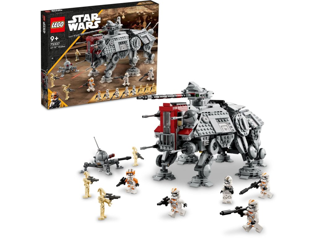 LEGO stavebnice - pro děti, vhodné od 9 let, řada LEGO® Star Wars, rok uvedení 2022, balení obsahuje 1082 dílků LEGO® Star Wars™ 75337 AT-TE™Zažij LEGO® bitvu o planetu UtapauOvládaj LEGO® chodce AT-TE s pohyblivýma nohama, těžkým dělem, odnímatelným kokpitem a kabinami. Umožní přehrát si známé scény z filmuZnovu si přehraj scény, které znáš z filmu Star Wars: Pomsta Sithů nebo si vymysli vlastní.Pro všechny příznivce Hvězdných válekLEGO® Star Wars™ tě přenese do světa Hvězdných válek, kde můžeš bojovat proti Temné straně Síly.1082kostek9+doporučený věkNávodke staženíLEGO® Star Wars™ 75337 AT-TE™Stavebnice LEGO® Star Wars™ 75337 AT-TE™ ti připomene scény z filmu Star Wars: Pomsta Sithů. Přehraj si oblíbené scény o dobytí planety Utapau nebo si vymysli vlastní příběhy. LEGO je tím pravým pro malé kreativce. Propracovaný chodecPropracovaný LEGO chodec AT-TE tě nadchne vysouvací rukojetí, pohyblivýma nohama, snadno přístupným kokpitem a kabinami, těžkým blasterovým kanónem, vystřelovači a dalšími doplňky. Součástí je minifigurka velitele Codyho, klonovaný dělostřelec z 212. legie, 3 klonovaní vojáci z 212. legie a 3 bitevní droidi.LEGO® Star Wars™ LEGO® Star Wars™ je skvělá zábava pro malé i velké příznivce této nesmrtelné ságy. V mžiku tě přenese do legendárního světa Hvězdných válek, kde můžeš bojovat proti Temné straně Síly. Čeká na tebe mnoho akce a dobrodružství!Ostatní vlastnosti LEGO® Star Wars™ 75337 AT-TE™ Stavebnice určená pro všechny příznivce Hvězdných válek. Nabízí spoustu akce a dobrodružství. Rozvíjí kreativitu a podporuje fantazii. Procvičuje jemnou motoriku. Skvělá zábava pro děti i dospělé.Obsah balení stavebnice LEGO: AT-TE 5 minifigurek: Velitel Cody, klonovaný dělostřelec z 212. legie, 3 klonovaní vojáci z 212. legie + 3 bitevní droidi Doplňky Návod Rozměry chodce:19 × 44 × 24 cmDoplňkové parametry
