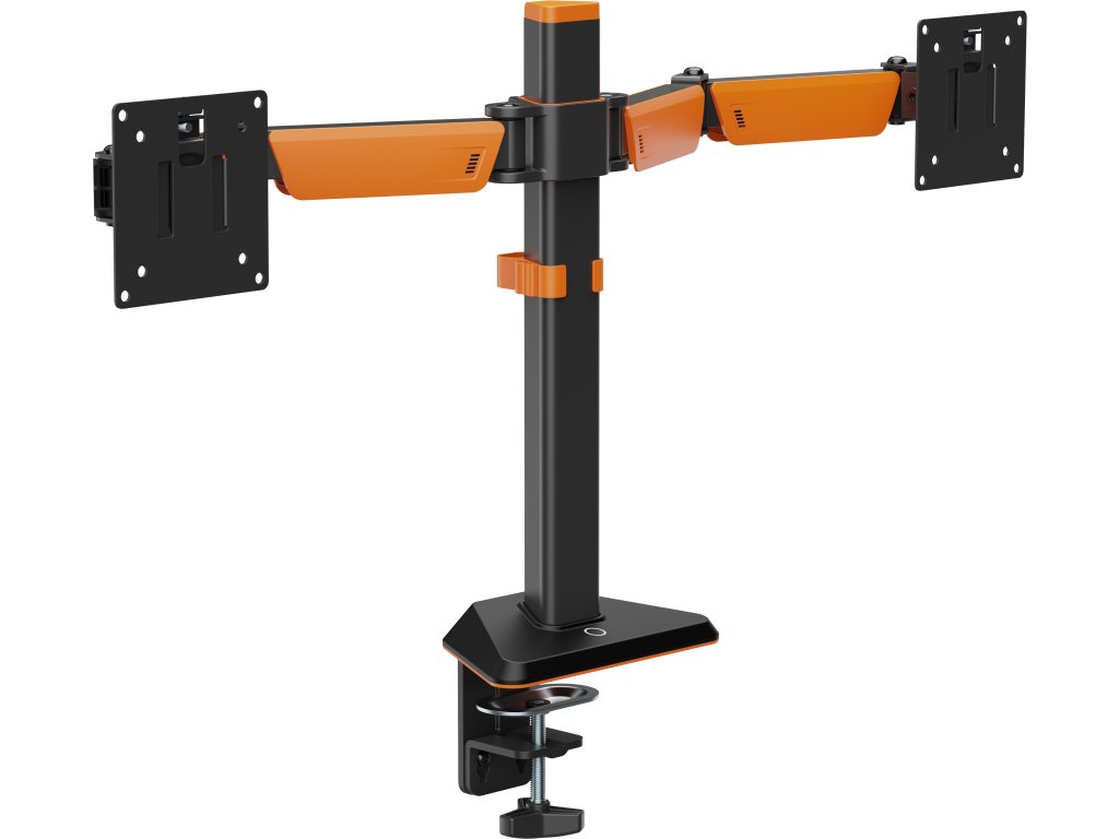 Držák na monitor - kloubový, pro 2 monitory 17 až 32", maximální nosnost 2× 12 kg, rychloupínací VESA desky, instalace na hranu stolu (10–80 mm) nebo průchodka deskou (10–40 mm), monitory lze naklápět (+60° až -60°), otáčet (+90° až -90°), rotovat (+180° až -180°), pivot (použití monitoru na výšku), výška tyče 410 mm, VESA 75 × 75, 100 × 100 mm, systém pro uspořádání kabelů, montážní sada v balení DRŽÁK NA MONITOR RAPTURE NEBULA DXStabilita, plynulý pohyb a promyšlená konstrukce v jednom!Držák Rapture NEBULA DX kombinuje robustní konstrukci s plynulým kloubovým systémem umožňujícím snadné nastavení ideální polohy monitorů. Je určen pro dvě obrazovky s úhlopříčkou 17" až 32" a hmotností do 12 kg, takže bez problémů unese i větší monitory. Díky rozsáhlému rozsahu pohybu si monitory nastavíte přesně podle aktuální potřeby. Rychloupínací VESA desky usnadňují montáž a integrované vedení kabelů udržuje pracovní plochu přehlednou. Matná černá povrchová úprava doplněná o oranžové prvky dodává držáku jedinečný herní charakter, který stylově doplní jakýkoli setup. TECHNICKÉ SPECIFIKACE 2 POČET MONITORŮ až 2× 12 kg NOSNOST 17–32" PRO MONITORY +60° až -60° NÁKLON +90° až -90° OTÁČENÍ +180° až -180° ROTACE 874 × 128 × 533 mm ROZMĚRY 410 mm VÝŠKA TYČE svorka nebo průchodka MONTÁŽ rychloupínací VESA DESKY ČÍM VÁS DRŽÁK NA MONITOR RAPTURE NEBULA DX PŘEKVAPÍ ODOLNÁ KONSTRUKCE S HERNÍ DUŠÍPřesnost pohybu a jedinečný stylDržák Rapture NEBULA DX spojuje ocelovou konstrukci s prvky z hliníku, které zajišťují ideální kombinaci pevnosti, stability a nízké hmotnosti. Díky tomu poskytuje mimořádnou odolnost a jistotu při každodenním používání. Ramena s nosností až 12 kg bez problémů unesou širokou škálu monitorů s úhlopříčkou 17 až 32". Kloubový mechanismus poskytuje jemný, kontrolovaný pohyb a spolehlivě udrží monitor přesně tam, kde ho chcete mít. PLYNULÝ POHYB VE VŠECH SMĚRECHFlexibilní nastavení výšky i úhlu zobrazeníObrazovky lze také otočit z klasické horizontální orientace do vertikálního režimu (pivot) – ideálního pro čtení, kódování či chat během streamu. Náklon v rozsahu +60° až -60° vám pomůže nastavit obrazovky do ideální polohy, aby se eliminovaly odlesky a obraz zůstal dobře čitelný z různých pozic. Ramena držáku Rapture NEBULA DX s dosahem 380 mm poskytují dostatek prostoru pro přiblížení monitorů, abyste měli vše blíž na očích, nebo jejich odsunutí, pokud potřebujete více volného místa na stole. Díky posuvu po tyči s výškou 410 mm lze monitory snadno výškově přizpůsobit tak, aby zůstaly v ergonomicky správné poloze při dlouhém sezení i náročném hraní. SNADNÁ MONTÁŽVše potřebné najdete v baleníInstalace držáku Rapture NEBULA DX je rychlá, přehledná a bez zbytečných komplikací. Konstrukce umožňuje dva způsoby upevnění – na hranu stolu pomocí svorky (10–80 mm) nebo průchodkou skrz desku (10–40 mm), takže držák snadno přizpůsobíte většině stolů a pracovních ploch. Vše potřebné pro montáž, včetně šroubů, imbusových klíčů a podložek, je součástí balení. RYCHLOUPÍNACÍ VESA DESKYŠetří čas i nervyRychloupínací VESA desky výrazně zjednodušují nasazení i sundání monitoru. Stačí desku nejprve přišroubovat na zadní stranu monitoru, poté ji zacvaknout do ramene a zajistit jedním šroubkem, který dotáhnete zcela bez nářadí. Díky kompatibilitě se standardy VESA (75 × 75 a 100 × 100 mm) je držák Rapture NEBULA DX vhodný pro většinu běžně prodávaných monitorů. Tato konstrukce výrazně šetří čas, minimalizuje riziko poškození obrazovky a zvyšuje celkový komfort při práci i instalaci.Doplňkové parametry