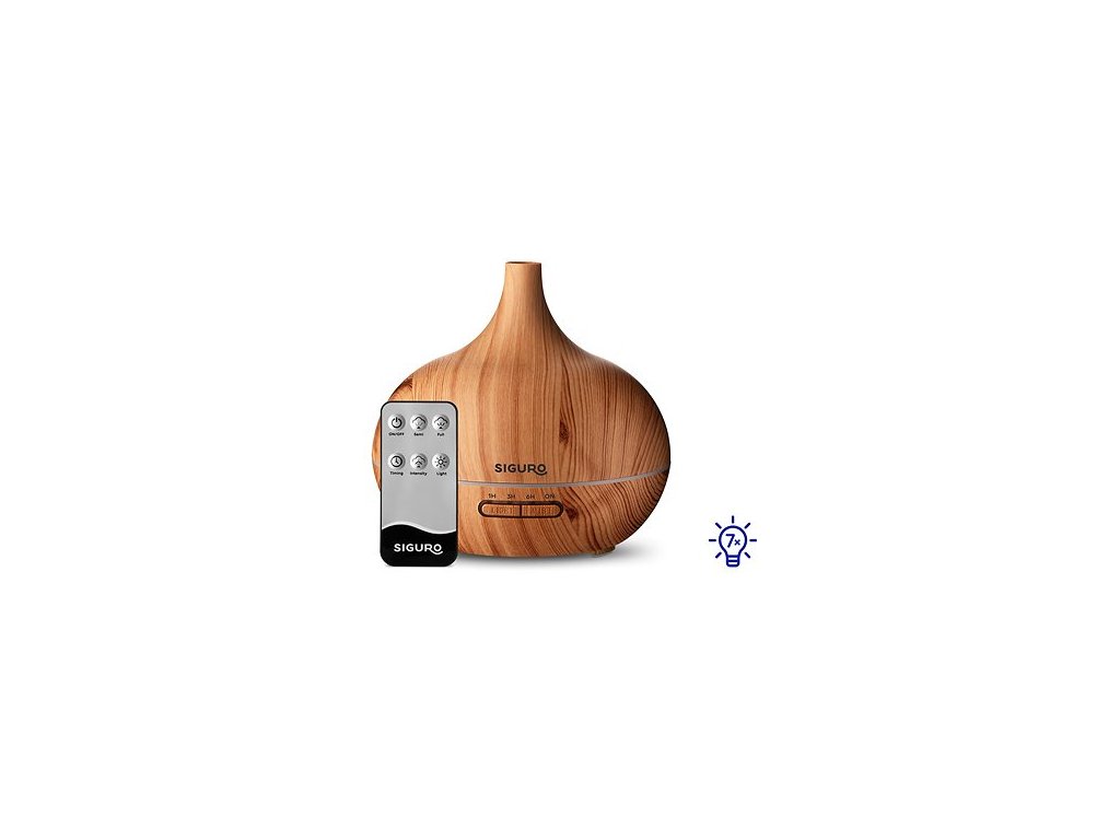 Aroma difuzér objem nádoby 400ml, výkon 12W, časovač, tichý provoz (<35dB), automatické vypnutí, 7 barev podsvícení, doporučená velikost místnosti 20-40m2, doba provozu až 10h, dálkové ovládání v balení, délka kabelu 180cm, 3 roky záruka Aroma difuzér Siguro AD-G410LW CommaNádherně si provoňte místnost, zlepšete náladu, zvlhčete vzduch a vytvořte útulnou atmosféru. To vše zvládnete pomocí jediného přístroje – aroma difuzéru Siguro AD-G410LW Comma v nádherné imitaci dřeva, který perfektně doplní jakýkoliv interiér. Přístroj lze používat v kombinaci s přírodními esenciálními oleji nebo samostatně s vodou jako zvlhčovač vzduchu a je vhodný pro místnosti o velikosti 20–40 m2. Mezi benefity aroma difuzéru zcela jistě patří velmi slušná doba provozu. Nádržka na vodu 400 ml totiž umožňuje zvlhčování až 10 hodin bez přerušení, dále oceníte tichý až neslyšitelný chod, díky čemuž vás nebude rušit při relaxování.Pohodlná obsluha tlačítky nebo dálkovým ovladačemPoužití aroma difuzéru Siguro AD-G410LW Comma je velmi snadné, stačí naplnit nádržku o objemu 400 ml vodou s esenciálním olejem a přístroj zapojit do elektrické sítě. Ovládání zajišťují dvě tlačítka. Pomocí tlačítka "MIST" nastavíte intenzitu a režim vypouštění páry – nepřetržitý chod či automatické vypnutí po jedné, třech nebo šesti hodinách. Tlačítko "LIGHT" poté slouží pro ovládání podsvícení, které je k dispozici v 7 různých barvách s možností úplného vypnutí. Pro ovládání difuzéru odkudkoliv můžete využít také dodávaný dálkový ovladač.Dva způsoby využitíFunguje s esenciálními oleji nebo samostatně s vodouJednoduché ovládáníAroma difuzér se ovládá tlačítky nebo dálkovým ovladačemPříjemné podsvíceníLze vybírat mezi 7 barvami a dvěma stupni intenzitySafe ProductPečlivě prověřený produkt, který je maximálně bezpečnýSiguro AD-G410LW Comma funguje i jako zvlhčovač vzduchuPokud však nebudete mít chuť ani náladu na aromaterapii, lze difuzér Siguro AD-G410LW Comma využít i jako zvlhčovač vzduchu s výkonem až 45 ml/h. V zimních měsících se totiž často objevuje problém se suchým vzduchem, který vzniká topením v místnosti. Difuzér dokáže zvláčnit suchý vzduch a vytvořit tak příjemné prostředí. Vytvořte si příjemnou a útulnou atmosféru pro pohodový odpočinekObjem vody (400 ml) postačuje až pro 10 hodin provozu. Aroma difuzér Siguro AD-G410LW Comma disponuje praktickým podsvícením, které můžete nastavit v 7 různých barvách a 2 intenzitách, jednoduše tak vytvoříte ideální atmosféru pro relaxování. Samozřejmostí je funkce automatického vypnutí v případě, že v nádržce dojde voda. Součástí balení je napájecí adaptér, nádobka pro bezproblémové doplňování vody a dálkové ovládání, včetně baterie. Výhody:Krásně provoní pokoj7 barev podsvícení s možností úplného vypnutíJednoduché ovládání pomocí dvou tlačítekDálkový ovladač pro snadné ovládání odkudkolivČasovač a možnost nastavení intenzityBezhlučný provozFunguje i jako zvlhčovač vzduchuFunkce automatického vypnutí v případě, že dojde v nádržce vodaStylové provedení v imitaci dřevaVlastnosti:Objem nádržky na vodu: 400 mlDoporučená velikost místnosti: 20–40 m2Výkon Zvlhčování: 30–45 ml/hHlučnost: <35 dBDoba provozu: až 10 hodinMateriál: ABS a PPRozměry: 170 × 170 × 165 mmDélka kabelu: 180 cmVýkon: 12 WProč vsadit na Siguro?Značka Siguro nabízí designově sladěné produkty, které vám dovolí vkusně zkombinovat vybavení domácnosti. Vše vyrábíme v certifikovaných, auditovaných továrnách, kde je zaručena kvalita i lidský přístup. Záleží nám také na vašem pohodlí, za každý kus ručíme prodlouženou zárukou na 3 roky a v případě potíží s produkty Siguro se můžete spolehnout na rychlou výměnu přímo na pobočkách.Každý produkt nabídne něco navícGarantujeme okamžitou výměnu na pobočkáchZískáte nadstandardní záruku prodlouženou na 3 rokyVyrobeno pouze v ověřených a kontrolovaných továrnáchDoplňkové parametry