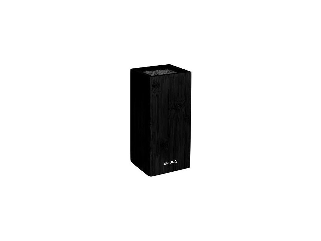 Stojan na nože - blok, bambusový, zásuvný, kvádrový tvar, rozměry 255 × 115 × 115 mm (V׊×D), černá barva Stojan na nože Siguro Bamboo LineHledáte blok na nože, který nejen poskytne ochranu pro ostří nožů, ale také zaujme svým vzhledem? Představujeme vám blok na nože Siguro Bamboo Line v černém provedení, který je místo klasických drážek na nože celý vyplněný plastovými vlákny – nože tak můžete zasunout, kamkoliv chcete, navíc toto řešení chrání ostří.Velmi praktické provedení chránící ostří nožůStojan na nože Siguro Bamboo Line je ideální pro nože s délkou čepele až 22 cm – díky němu budou nože přehledně uložené a neustále po ruce. Vyjímatelná plastová vlákna chrání ostří a prodlužují životnost každého nože.Nože na jednom místěDíky bloku budou nože po ruce na jednom místěProtiskluzová podložkaPerfektní stabilita na kuchyňské lince za každé situaceChrání ostří nožůPlastová vlákna chrání ostří a prodlužují životnost nožůElegantní černé provedeníSe Siguro Bamboo Line přinesete do vaší kuchyně kousek přírody. Blok na nože je totiž vyrobený z přírodního bambusu, díky čemuž se bude vyjímat v každé kuchyni zejména těch, ve kterých dominují přírodní materiály.Výhody:Stojan na nože z bambusového dřevaPřírodní materiál se bude vyjímat v každé kuchyniVyplněný plastovými vlákny – hodí se na všechny typy nožů, které můžete zasunout kamkolivChrání ostří a prodlužuje životnost každého nožeSnadná údržbaVlastnosti:Vhodné na nože s čepelí: max. 22 cmMateriál: přírodní bambusRozměry: 255 × 115 × 115 mmHmotnost: 2,1 kgProč vsadit na Siguro?Značka Siguro nabízí designově sladěné produkty, které vám dovolí vkusně zkombinovat vybavení domácnosti. Vše vyrábíme v certifikovaných, auditovaných továrnách, kde je zaručena kvalita i lidský přístup. Záleží nám také na vašem pohodlí, za každý kus ručíme prodlouženou zárukou na 3 roky.Každý produkt nabídne něco navícGarantujeme okamžitou výměnu na pobočkáchZískáte nadstandardní záruku prodlouženou na 3 rokyVyrobeno pouze v ověřených a kontrolovaných továrnáchDoplňkové parametry