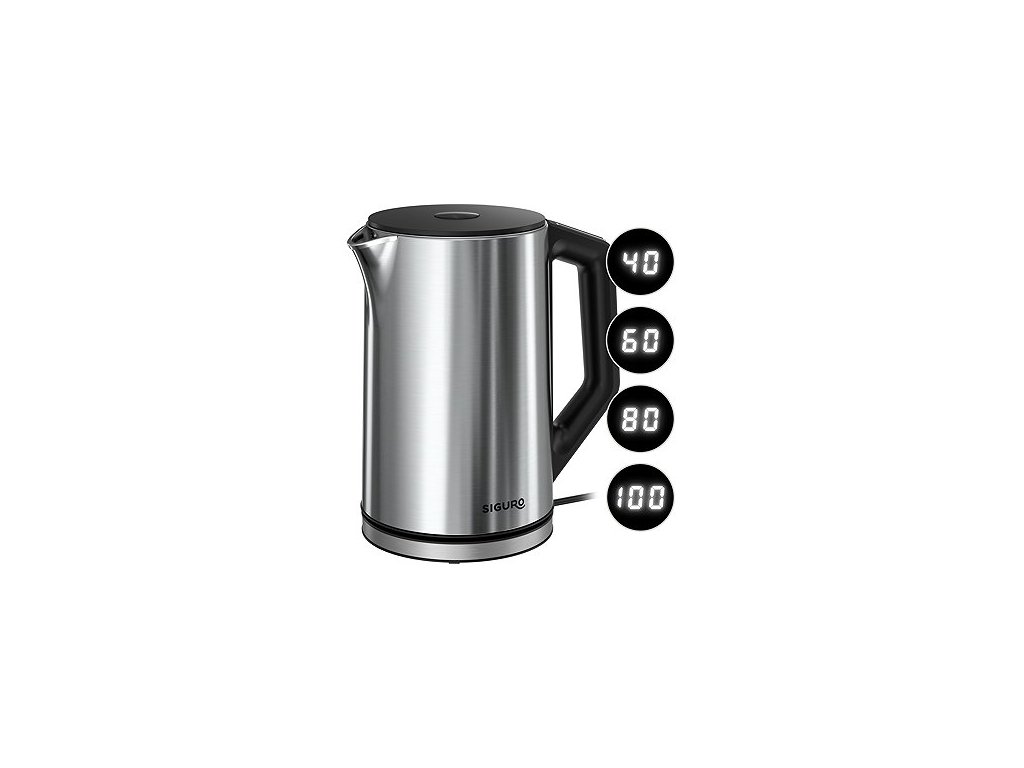 Rychlovarná konvice - s regulací teploty 40–100 °C v krocích po 5 °C, 4 přednastavené teploty, objem 1,5 l, příkon 2 200 W, britský Strix konektor s životností více než 12 000 použití, 360° otočná základna s prostorem pro kabel, materiál nerezová ocel, displej, dvojitý plášť (Cool Touch), funkce udržování teploty (až 30 minut), zajištění víka, automatické vypnutí při nedostatku vody a dosažení nastavené teploty, skrytá topná spirála, antidrip víko, zvukový signál, délka kabelu 70 cm, 3 roky záruka Rychlovarná konvice Siguro Canberra R750SUElegantní rychlovarná konvice Siguro Canberra R750SU o objemu 1,5 litru nabízí možnost nastavení cílové teploty, britský Strix konektor s dlouhou životností, dvojitý plášť (Cool Touch) z nerezové oceli či kvalitní materiály. U tohoto modelu si můžete nastavit teplotu již od 40 °C a lze tak využít i pro přípravu dětských pokrmů. Samozřejmostí je automatické vypnutí po dosažení bodu varu, ochrana proti chodu naprázdno, funkce udržování teploty či praktická 360° otočná základna s úložným prostorem pro kabel. Se svým elegantním provedením se konvice stane zajímavým designovým doplňkem každé moderní kuchyně. Dvouplášťové provedeníVnější i vnitřní plášť rychlovarné konvice Siguro Canberra R750SU je vyroben z vysoce kvalitní a zdravotně nezávadné nerezové oceli 304, která nezachytává pachy ani příchutě, a to bez ohledu na četnost používání. Dvojitá stěna zajišťuje, že povrch zůstává i při varu chladný, takže nehrozí popálení vám ani dětem. Skrytá topná spirála pod dnem je chráněna před usazováním vodního kamene, což prodlužuje její životnost a díky použitým materiálům se konvice velmi snadno čistí. Britský Strix konektor Testovaný na více než 12 000 použití pro dlouhou životnost a spolehlivost. Nerezová ocel Použitý materiál neobsahuje škodlivé látky a je zdravotně nezávadný, navíc se snadno čistí. Otočná základna 360° otočná základna ulehčuje a zrychluje manipulaci s konvicí. Antidrip víko Díky speciálnímu provedení stéká zkondenzovaná voda zpět do konvice. Cool Touch Dvouplášťové pro bezpečné používání bez popálení. Automatické vypnutí Při dosažení bodu varu se konvice automaticky vypne. Bezpečnostní ochrana Konvice disponuje bezpečnostní funkcí proti chodu naprázdno. Udržování teploty Udrží vodu ohřátou na danou teplotu až 30 minut. Ohřívá vodu na přesně zvolenou teplotuU rychlovarné konvice Siguro Canberra R750SU si můžete vybrat z celkem čtyř přednastavených teplot – 40, 60, 80 a 100 °C. Pokud budete potřebovat zvolit jinou teplotu, stačí použít příslušné tlačítko na rukojeti a nastavit požadovanou teplotu od 40 do 100 °C v krocích po 5 °C. S touto konvicí tak můžete připravovat například nápoje, které nevyžadují vroucí vodu (různé druhy čajů či kávy) či dětské pokrmy. Pokud pouze stisknete tlačítko zapnutí / vypnutí, aniž byste nastavili teplotu, konvice spustí ohřev vody na poslední nastavenou teplotu. Aktuální teplota v konvice se zobrazuje na displeji umístěném na vrchu rukojeti. Funkce udržování teplotyTuto funkci jednoduše aktivujete tak, že nastavíte teplotu příslušným tlačítkem, následně stisknete tlačítko pro udržování teploty a spustíte ohřev. Jakmile se voda ohřeje na zvolenou teplotu, konvice Siguro Canberra R750SU se automaticky přepne do režimu udržování teploty. Maximální doba režimu udržování teploty je 30 minut a nelze zvolit pro 100 °C. Každé stisknutí tlačítka a dokončení ohřevu je doprovázeno zvukovým upozorněním, které lze v případě potřeby vypnout. Strix konektor – srdce bezpečné a spolehlivé konviceStrix konektor patří mezi nejspolehlivější a nejbezpečnější řešení pro rychlovarné konvice. Díky propracovanému systému nabízí ochranu proti přehřátí, delší životnost a vysokou úroveň bezpečnosti, kterou běžné konektory často nemohou zaručit. O kvalitě svědčí nejen přísné testování, ale i každodenní používání miliony lidí po celém světě.Bezpečnost – Dva nezávislé senzory doplněné chrání před přehřátím při nedostatku vody, funkce LOSO konvici vypne při špatném dosednutí na základnu.Odolnost – Testováno na více než 12 000 cyklů, což je několikanásobně více, než se běžně vyžaduje.Materiály – Použití kvalitních bimetalických součástek (bez koroze a s dlouhou životností)Udržitelnost – Díky efektivnímu řízení páry a teploty pomáhá snižovat emise a šetřit energii. Chytré detaily, které šetří čas i místoRychlovarná konvice Siguro Canberra R750SU je vybavena ukazatelem hladiny vody na vnitřní straně nádoby, takže vždy přesně budete vědět, kolik vody vaříte. Díky 360° otočné základně můžete konvici umístit z jakéhokoli úhlu. Integrovaný prostor pro uložení kabelu zajistí, že kabel nebude na kuchyňské lince zbytečně překážet. Konvice disponuje také světelnou kontrolkou, která informuje o tom, že je konvice v provozu. Pohodlí a čistota při každém použitíPohodlné nalévání vody do šálků usnadňuje optimálně tvarovaná výlevka konvice. Rychlovarná konvice Siguro Canberra R750SU také disponuje antidrip víkem – při varu se na vnitřní straně sráží pára a díky speciálním výstupkům se kapky vody shromažďují a stékají zpět do konvice, místo aby...Doplňkové parametry