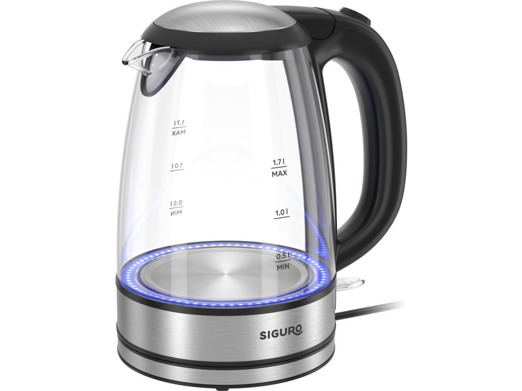 Rychlovarná konvice - objem 1,7 l, minimální objem 0,5 l, příkon 2200 W, materiál nerez a sklo, přístupný filtr, zajištění víka, automatické vypnutí při sejmutí konvice během varu, při nedostatku vody a při dosažení bodu varu, světelný indikátor provozu, skrytá topná spirála, otočný podstavec, Strix konektor, integrované úložiště pro kabel, oboustranný ukazatel vodní hladiny, délka kabelu 75 cm, 3 roky záruka Rychlovarná konvice Siguro EK-G21 Bright GlassI vaření vody v rychlovarné konvici může být zábava. Siguro EK-G21 Bright Glass je skleněná rychlovarná konvice, se kterou budete mít pod kontrolou celý průběh. Během vaření je konvice podsvícená modrým světlem – snadno tak poznáte, že je v provozu a také se stane neobvyklým designovým doplňkem každé moderní kuchyně. Samozřejmostí je skvěle viditelný vodoznak a díky objemu 1,7 litru a příkonu 2 200 W bez problémů připraví rychle a úsporně horkou vodu i pro početnou rodinu. Příjemnou obsluhu zajišťuje ergonomická rukojeť a 360° britský STRIX konektor. Nádherné provedení s podsvícenímRychlovarná konvice Siguro EK-G21 Bright Glass je vyrobena z elegantní kombinace borosilikátového skla a nerezové oceli 304. Tyto materiály nejen že skvěle vypadají, ale také se snadno čistí, neobsahují škodlivé látky a jsou zdravotně nezávadné, nezachytávají pachy či příchutě, a to bez ohledu na to, kolikrát konvici použijete. Borosilikátové sklo je odolné vůči škrábancům a má vysokou teplotní i chemickou odolnost.Designové provedeníÚžasná kombinace nerezu a skla bude ozdobou každé kuchyněBritský STRIX konektorTestovaný na více než 12 000 použití pro dlouhou životnost a spolehlivostLED podsvíceníModré podsvícení se aktivuje při zapnutí a funguje jako ukazatel, že je konvice v provozuPřístupný filtrFiltr je snadno přístupný a snadno se čistíNavržena pro spolehlivý provoz a dlouhou životnostTato rychlovarná konvice se pyšní nejen kvalitními a odolnými materiály, ze kterých je vyrobena, ale i precizním britským STRIX konektorem testovaným na více než 12 000 použití – zaručuje velmi dlouhou životnost a spolehlivost. Základna disponuje prostorem pro kabel a je otočná, konvici tak na ni můžete umisťovat z jakéhokoliv úhlu. Při čištění Siguro EK-G21 Bright Glass zcela jistě oceníte i přístupný filtr.Vaření s konvicí Siguro EK-G21 Bright Glass je bezpečnéPohodné nalévání vody do šálků usnadňuje optimálně tvarované ústí konvice. Nezbytnou výbavou rychlovarné konvice Siguro EK-G21 Bright Glass je pojistka víka a bezpečnostní prvky jako např. automatické vypnutí při sejmutí konvice během varu, při nedostatku vody a při dosáhnutí bodu varu. Topná spirála skrytá pod dnem je chráněna před usazováním vodního kamene.Výhody:Designové provedení ze skla a nerezu – borosilikátové sklo a nerezová ocel 304Modré podsvícení během vaření vodySnadná údržba – skrytá topná spirálaBezpečnostní prvky – zajištění víka, automatické vypnutí při sejmutí konvice během varu, při nedostatku vody a při dosáhnutí bodu varu, světelná indikace provozuBritský STRIX konektor testovaný na více než 12 000 použitíFiltr při nalévání zachytí případné nečistoty z uvařené vodyOtočný podstavec s prostorem pro kabelBorosilikátové sklo je odolné proti škrábancům a má vysokou teplotní i chemickou odolnostVlastnosti:Objem: 1,7 litruMinimální objem: 0,5 litruPříkon: 2 220 WMateriál: nerezová ocel 304, borosilikátové sklo a plastRozměry: 154 × 253 × 226 mmDélka kabelu: 75 cmProč vsadit na Siguro?Značka Siguro nabízí designově sladěné produkty, které vám dovolí vkusně zkombinovat vybavení domácnosti. Vše vyrábíme v certifikovaných, auditovaných továrnách, kde je zaručena kvalita i lidský přístup. Záleží nám také na vašem pohodlí, za každý kus ručíme prodlouženou zárukou na 3 roky a v případě potíží s produkty Siguro se můžete spolehnout na rychlou výměnu přímo na pobočkách.Každý produkt nabídne něco navícGarantujeme okamžitou výměnu na pobočkáchZískáte nadstandardní záruku prodlouženou na 3 rokyVyrobeno pouze v ověřených a kontrolovaných továrnáchDoplňkové parametry