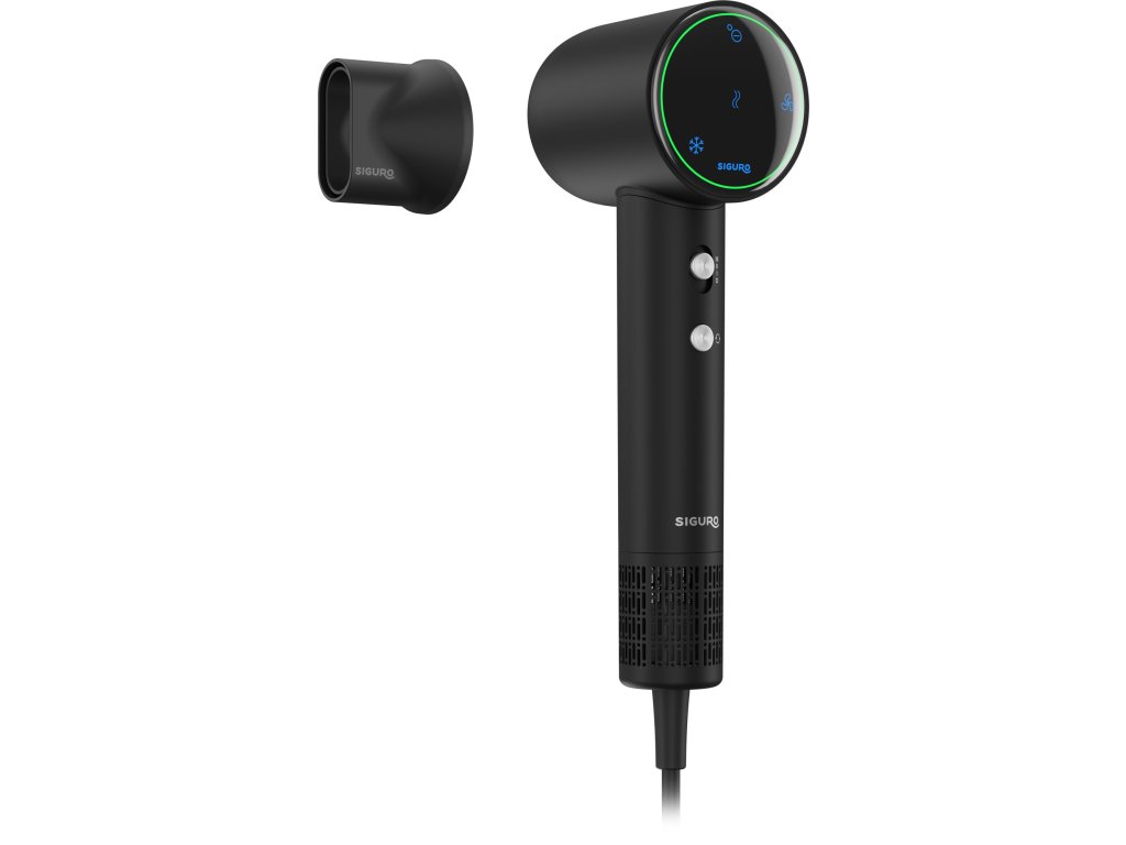 Fén na vlasy - příkon 1 500 W, vysokorychlostní, ionizátor, 4 teplotní stupně, 3 rychlosti proudění vzduchu, režimy střídání teplot a Baby Care, digitální displej, nástavec koncentrátor, odnímatelný magnetický filtr, délka kabelu 1,7 m Fén na vlasy Siguro I450B Twilight FlowS fénem na vlasy Siguro I450B Twilight Flow, který je vybavený celou řadou praktických funkcí, dosáhnete perfektních výsledků. Tento fén nabídne ionizátor, 4 teplotní stupně, 3 rychlosti proudění vzduchu, režim Baby Care, displej či odnímatelný magnetický filtr. Jistě oceníte tišší chod v porovnání s ostatními fény, odlehčené provedení a kompaktní rozměry, díky čemuž nezabere mnoho místa a fén si můžete bez problémů vzít s sebou na cesty. Součástí balení je koncentrátor.Navržený pro rychlé a šetrné vysoušeníSiguro I450B Twilight Flow disponuje kvalitním bezkartáčovým (BLDC) motorem s výkonem 1 500 W a až 101 000 otáčkami vytváří silný proud vzduchu pro rychlé vysušení. Rychlost lze regulovat pomocí tlačítka na rukojeti ve 3 úrovních – nízká, střední a vysoká. Aktuálně nastavená rychlost je signalizována příslušnou ikonou na displeji.IonizátorGenerátor záporných iontů snižuje možné nahromadění statické elektřiny a zabraňuje krepatění vlasů.4 teplotyVyberte si nízkou, střední, vysokou teplotu nebo studený vzduch pro závěrečnou fixaci účesu.3 rychlostíProudění vzduchu lze regulovat celkem ve třech rychlostech pomocí tlačítka na rukojeti. Baby CareVelmi slabý vánek pro bezpečné vysušení jemných dětských vlasů.Výkonný motorMotor vytváří silný proud vzduchu pro rychlé vysušení.Tichý provozSiguro I450B Twilight Flow dosahuje hlučnosti pouhých 70 dB a je tišší v porovnání s běžnými fény.Safe ProductPečlivě prověřený produkt, který je maximálně bezpečný.Odlehčená konstrukceFén váží pouhých 377 g (bez kabelu) a je vhodný i pro cestování.Čtyři nastavení teploty pro optimální péči o vaše vlasyS fénem na vlasy Siguro I450B Twilight Flow budete mít na výběr z celkem čtyř teplot. Výkon fénu si tak můžete přizpůsobit typu svých vlasů a zajistit si vždy rychlé a stoprocentní výsledky. Pomocí stisku tlačítka na rukojeti vybere nízkou, střední, vysokou teplotu nebo studený vzduch pro závěrečnou fixaci účesu. K dispozici je i režim střídání teplého a studeného vzduchu. Vybraná teplota je barevně znázorněna na kruhovém ukazateli pro obvodu displeje.Siguro I450B Twilight Flow disponuje režimem Baby Care a ionizátoremPokud máte malé děti, zcela jistě oceníte režim Baby Care – velmi slabý vánek, díky kterému bezpečně vysušíte jemné dětské vlasy. V tomto režimu nelze nastavit rychlost ani teplotu. Fén je navíc vybavený paměťovým čipem a po opětovném zapnutí se spustí na teplotu, ve které byl naposledy vypnutý. Siguro I450B Twilight Flow nabízí generátor záporných iontů. Ty během vysoušení pronikají do vlasů a neutralizují kladný náboj v nich, snižují možné nahromadění statické elektřiny a zabraňují krepatění vlasů. Koncentrátor v baleníSoučástí balení je koncentrátor sloužící k vysušení a vytvarování jednotlivých pramenů vlasů. K fénu Siguro I450B Twilight Flow se připevňuje pomocí magnetu, který zajišťuje snadné nasazení a odstranění. Koncentrátor je otočný o 360°, proto jej budete moci pohodlně nastavit do požadovaného úhlu.Klíčové vlastnostiIonizační fén pro lesklejší a méně poškozené vlasyBLDC motor pro velmi rychlé vysoušení vlasů4 teplotní stupně – nízká, střední, vysoká a studený vzduchRežim střídání teplot a Baby Care pro bezpečné vysoušení dětských vlasů3 rychlostiDigitální displejOdnímatelný magnetický filtr pro snadnější čištěníV balení koncentrátor pro foukání jednotlivých pramenůOdlehčený design – pouze 377 gTišší než běžné fényTechnické specifikacePříkon: 1 500 WPočet rychlostí: 3Počet teplot: 4Hmotnost: 377 g (bez kabelu)Délka kabelu: 170 cmHlučnost: 1 m < 70 dBRozměry: 9 × 25 cmProč vsadit na Siguro?Značka Siguro nabízí designově sladěné produkty, které vám dovolí vkusně zkombinovat vybavení domácnosti. Vše vyrábíme v certifikovaných, auditovaných továrnách, kde je zaručena kvalita i lidský přístup. Záleží nám také na vašem pohodlí, za každý kus ručíme prodlouženou zárukou na 3 roky.Každý produkt nabídne něco navícGarantujeme okamžitou výměnu na pobočkáchZískáte nadstandardní záruku prodlouženou na 3 rokyVyrobeno pouze v ověřených a kontrolovaných továrnáchDoplňkové parametry