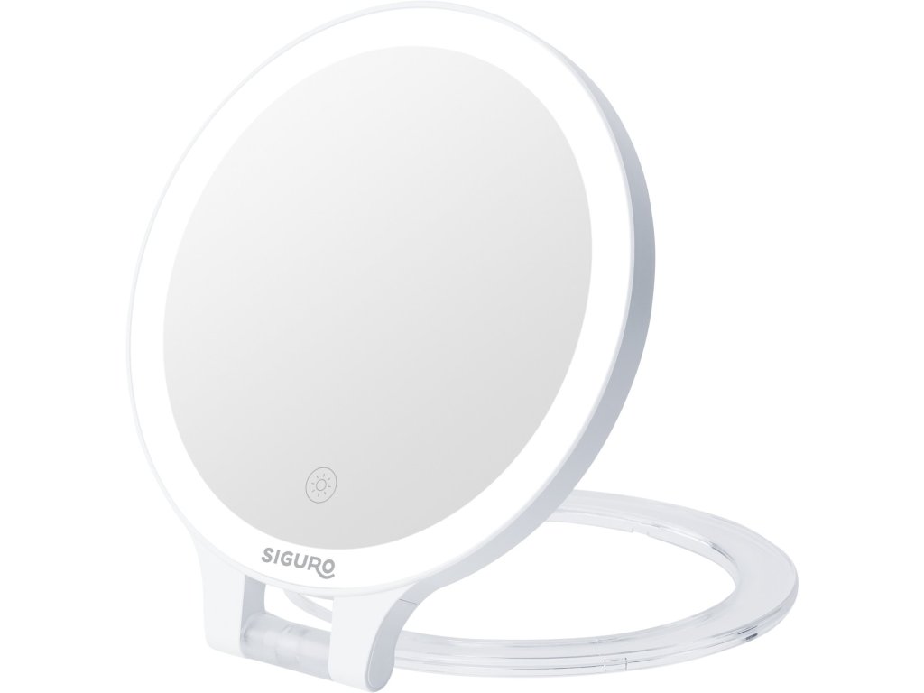 Kosmetické zrcátko - stolní, vhodné i jako cestovní, oboustranné, dvě zobrazovací plochy se zvětšením 1× a 10×, LED podsvícení, 72 LED diod, teplé, studené a bílé světlo, možnost postupného tlumení světla, nabíjení pomocí USB-C kabelu, kapacita baterie 1800 mAh, rozměry 219 × 219 × 22 mm, průměr zrcadlové plochy 165 mm, hmotnost 490 g, záruka 3 roky Kosmetické zrcátko Siguro LM-L360W Pure BeautyNejen šikovné ruce, ale i kvalitní světlo jsou jedním z hlavních předpokladů při péči o pleť, líčení a dalších kosmetických úpravách. Proto by se vám mohlo hodit oboustranné cestovní zrcátko Siguro LM-L360W Pure Beauty vybavené nastavitelným LED osvětlením a dvěma zobrazovacími plochami s 1× a 10× zvětšením. Díky kompaktním rozměrům a nízké hmotnosti si dokonalé líčení budete moci dopřát, kdekoliv budete potřebovat – stačí jej jednoduše sklopit a vložit do kosmetické tašky nebo kabelky. Energii na cestách zajistí integrovaná baterie s výdrží 2 hodiny, kterou pohodlně dobijete pomocí dodávaného USB-C kabelu.Dvě zrcadlové plochy s různými zvětšenímiPo rozložení můžete zrcátko pohodlně postavit na stůl či jakoukoliv rovnou plochu. Kosmetické zrcátko Siguro LM-L360W Pure Beauty disponuje dvěma kulatými zrcadlovými plochami o průměru 16,5 cm a 14,2 cm, kdy jedna nabízí 1× zvětšení a druhá poté 10× zvětšení, které oceníte zejména při nanášení očních stínů, řasenky či rtěnky. Další výhodou je, že zrcátko zásadně nezkresluje obraz. Kosmetické zrcátko Siguro se tak stane nepostradatelným pomocníkem každé ženy, pro niž je vzhled velmi důležitou součástí její osobnosti.Nastavitelná intenzitaRegulujte si intenzitu světla podle potřeb Barva světlaLze přepínat mezi teplým, bílým a studeným bílým světlemLi-Ion baterieIntegrovaný akumulátor dobijete snadno pomocí USB-C kabelu1× a 10× zvětšeníZrcátko je vhodné i na nanášení očních stínů, řasenky či rtěnkySiguro LM-L360W Pure Beauty má nastavitelné LED osvětleníZrcadlová plocha je lemována celkem 72 LED diodami – vždy tak budete vypadat skvostně. Napájecím tlačítkem poté můžete snadno přepínat barevnou teplotu mezi teplou, studenou nebo teplotou imitující běžné denní světlo – již se tak nemusíte strachovat, že na skutečném denním světle bude váš make-up vypadat nepřirozeně. Nechybí ani možnost regulovat intenzitu osvětlení, a to hned v několika úrovních.Ekologický způsob napájeníZrcátko Siguro LM-L360W Pure Beauty je vybaveno integrovanou Li-Ion baterií, která slibuje na jedno nabití výdrž až 2 hodiny. Akumulátor dobijete pohodlně pomocí dodávaného USB-C kabelu. Díky tomuto řešení není potřeba kupovat a měnit klasické baterie. Výhody:Oboustranné – 1× a 10× zvětšeníLED osvětlení se 72 diodamiLze nastavit teplé a studené světlo i imitaci běžného denního světlaVolitelná intenzita osvětleníIntegrovaná Li-Ion baterieUSB nabíjení (kabel v balení)Kompaktní rozměry – ideální na cestováníVlastnosti:Rozměry: 219 × 219 × 22 mmHmotnost: 0,49 kgPrůměr zrcadlové plochy: 16,5 / 14,2 cmNapájení: 5 V / 2 ABaterie: Li-Ion 3,7 V / 1 800 mAhVýdrž baterie: 2 hodinyPočet LED diod: 72 Světelný tok: 140–160 lm Zvětšení: 1× / 10×Materiál: ABS skloBarva: bíláProč vsadit na Siguro?Značka Siguro nabízí designově sladěné produkty, které vám dovolí vkusně zkombinovat vybavení domácnosti. Vše vyrábíme v certifikovaných, auditovaných továrnách, kde je zaručena kvalita i lidský přístup. Záleží nám také na vašem pohodlí, za každý kus ručíme prodlouženou zárukou na 3 roky a v případě potíží s produkty Siguro se můžete spolehnout na rychlou výměnu přímo na pobočkách.Každý produkt nabídne něco navícGarantujeme okamžitou výměnu na pobočkáchZískáte nadstandardní záruku prodlouženou na 3 rokyVyrobeno pouze v ověřených a kontrolovaných továrnáchDoplňkové parametry