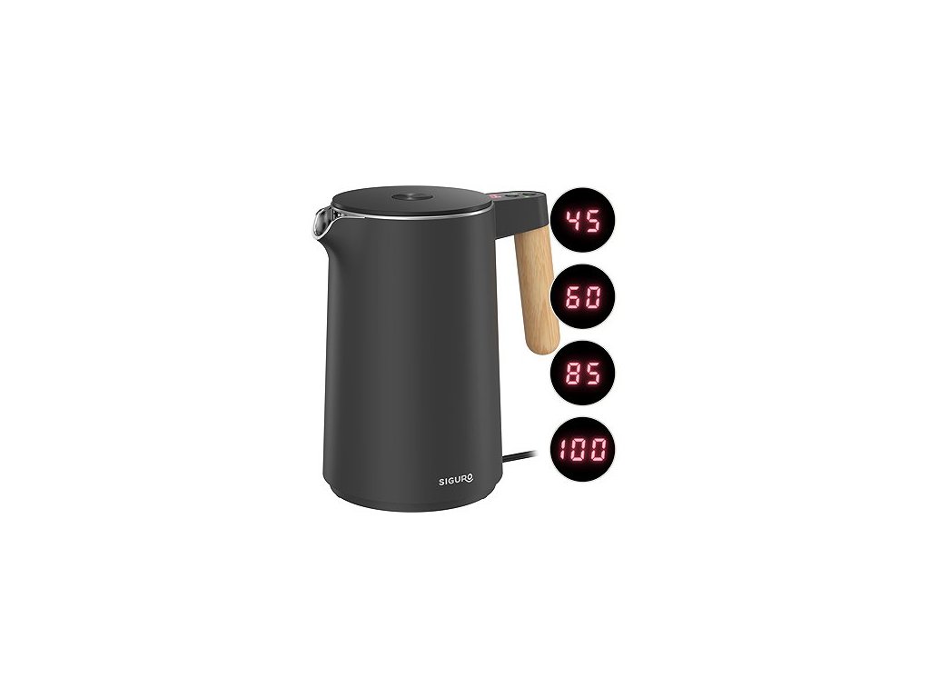 Rychlovarná konvice - s regulací teploty, 7 přednastavených teplot (45, 60, 70, 85, 90, 95 a 100 °C), objem 1,5 l, příkon 2 200 W, britský Strix konektor s životností více než 12 000 použití, 360° otočná základna s prostorem pro kabel, materiál nerezová ocel, dvojitý plášť (Cool Touch), funkce udržování teploty (až 8 hodin), zajištění víka, automatické vypnutí při nedostatku vody a dosažení nastavené teploty, skrytá topná spirála, antidrip víko, délka kabelu 70 cm, 3 roky záruka Rychlovarná konvice Siguro Mackay C750LYElegantní rychlovarná konvice Siguro Mackay C750LY o objemu 1,5 litru nabízí možnost nastavení cílové teploty, britský Strix konektor s dlouhou životností, dvojitý plášť (Cool Touch) či kvalitní materiály. U tohoto modelu si můžete nastavit teplotu již od 45 °C a lze tak využít pro přípravu celé řady teplých nápojů. Samozřejmostí je automatické vypnutí po dosažení bodu varu, funkce udržování teploty, ochrana proti chodu naprázdno či praktická 360° otočná základna s úložným prostorem pro kabel. Se svým elegantním provedením s rukojetí v imitaci dřeva se konvice stane zajímavým designovým doplňkem každé moderní kuchyně. Dvouplášťové provedeníVnější i vnitřní plášť rychlovarné konvice Siguro Mackay C750LY je vyroben z vysoce kvalitní a zdravotně nezávadné nerezové oceli 304, která nezachytává pachy ani příchutě, a to bez ohledu na četnost používání. Dvojitá stěna zajišťuje, že povrch zůstává i při varu chladný, takže nehrozí popálení vám ani dětem. Skrytá topná spirála pod dnem je chráněna před usazováním vodního kamene, což prodlužuje její životnost a díky použitým materiálům se konvice velmi snadno čistí. Britský Strix konektor Testovaný na více než 12 000 použití pro dlouhou životnost a spolehlivost. Nerezová ocel Použitý materiál neobsahuje škodlivé látky a je zdravotně nezávadný, navíc se snadno čistí. Otočná základna 360° otočná základna ulehčuje a zrychluje manipulaci s konvicí. Antidrip víko Díky speciálnímu provedení stéká zkondenzovaná voda zpět do konvice. Cool Touch Dvouplášťové pro bezpečné používání bez popálení. Automatické vypnutí Při dosažení bodu varu se konvice automaticky vypne. Bezpečnostní ochrana Konvice disponuje bezpečnostní funkcí proti chodu naprázdno. Udržování teploty Udrží vodu ohřátou na danou teplotu až 8 hodin. Ohřívá vodu na přesně zvolenou teplotuVýchozím nastavením rychlovarné konvice Siguro Mackay C750LY je ohřev na 100 °C. Pokud budete potřebovat zvolit jinou teplotu, stačí použít příslušné tlačítko na rukojeti a nastavit požadovanou teplotu – 45, 60, 70, 85, 90, 95° nebo 100 °C. S touto konvicí tak můžete připravovat například nápoje, které nevyžadují vroucí vodu (různé druhy čajů či kávy) či dětské pokrmy. Aktuální teplota v konvice se zobrazuje na displeji umístěném na vrchu rukojeti. Funkce udržování teplotyTuto funkci jednoduše aktivujete tak, že nastavíte teplotu příslušným tlačítkem, následně stisknete tlačítko pro udržování teploty a spustíte ohřev. Jakmile se voda ohřeje na zvolenou teplotu, konvice Siguro Mackay C750LY se automaticky přepne do režimu udržování teploty. Maximální doba režimu udržování teploty je až 8 hodin dle zvoleného režimu a nelze zvolit pro 100 °C. Strix konektor – srdce bezpečné a spolehlivé konviceStrix konektor patří mezi nejspolehlivější a nejbezpečnější řešení pro rychlovarné konvice. Díky propracovanému systému nabízí ochranu proti přehřátí, delší životnost a vysokou úroveň bezpečnosti, kterou běžné konektory často nemohou zaručit. O kvalitě svědčí nejen přísné testování, ale i každodenní používání miliony lidí po celém světě.Bezpečnost – Dva nezávislé senzory doplněné chrání před přehřátím při nedostatku vody, funkce LOSO konvici vypne při špatném dosednutí na základnu.Odolnost – Testováno na více než 12 000 cyklů, což je několikanásobně více, než se běžně vyžaduje.Materiály – Použití kvalitních bimetalických součástek (bez koroze a s dlouhou životností)Udržitelnost – Díky efektivnímu řízení páry a teploty pomáhá snižovat emise a šetřit energii. Chytré detaily, které šetří čas i místoRychlovarná konvice Siguro Mackay C750LY je vybavena ukazatelem hladiny vody na vnitřní straně nádoby, takže vždy přesně budete vědět, kolik vody vaříte. Díky 360° otočné základně můžete konvici umístit z jakéhokoli úhlu. Integrovaný prostor pro uložení kabelu zajistí, že kabel nebude na kuchyňské lince zbytečně překážet. Pohodlí a čistota při každém použitíPohodlné nalévání vody do šálků usnadňuje optimálně tvarovaná výlevka konvice. Rychlovarná konvice Siguro Mackay C750LY také disponuje antidrip víkem – při varu se na vnitřní straně sráží pára a díky speciálním výstupkům se kapky vody shromažďují a stékají zpět do konvice, místo aby voda při otevření víka vytekla ven. Víko lze otevřít až do úhlu 85°, což usnadňuje nalévání vody nebo případné čištění. Klíčové vlastnostiElegantní design s rukojetí v imitaci dřevaDvouplášťové provedení z nerezové oceliVysoce kvalitní nerezová ocel 304, která je zdravotně nezávadná a nepohlcuje pachy a chutěMožnost...Doplňkové parametry