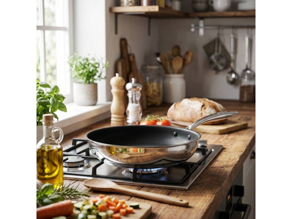 Pánev - průměr 20 cm, vnitřní povrch nepřilnavý 3vrstvý ILAG® Professional S, materiál pánve prvotřídní nerezová ocel 304, dno hliník a indukční deska z feromagnetického materiálu, nýtovaná ocelová rukojeť, možnost použití v troubě do 250 °C, odolnost proti poškrábání, oděru a korozi, určená pro všechny varné desky včetně indukce, lze umývat v myčce nádobí Pánev Siguro Pure DelightPrůměr 20 cm, odolný nepřilnavý třívrstvý povrch ILAG® Professional S, prvotřídní nerezová ocel 304 či možnost použití na jakémkoliv typu plotýnky, včetně indukční, a v pečicí troubě do teploty až 250 °C. To vše nabízí pánev Siguro Pure Delight, se kterou se vám už nic nepřipálí, při vaření budete potřebovat minimum tuku, a kromě toho ji můžete bez obav mýt v myčce. V neposlední řadě oceníte zdravotně nezávadné materiály a bezpečnou nýtovanou rukojeť.Kvalitní provedení ze zdravotně nezávadných materiálůPánev Siguro Pure Delight včetně rukojeti je vyrobena z nerezové oceli 304, která je stejně tak jako nepřilnavý povrch ILAG® Professional S zdravotně nezávadná, tudíž neobsahuje ani neuvolňuje žádné toxické látky. Velmi praktické je i samotné provedení rukojeti – ta je nejenom ergonomická, ale i dutá, díky tomu se zahřívá velmi pomalu. Navíc je zcela uzavřená a při mytí do ní neteče. Také disponuje praktickým otvorem pro zavěšení.ILAG® Professional SOdolný nepřilnavý třívrstvý povrch s dlouhou životností. Všechny typy varných desekPánev je vhodná na sklokeramické, halogenové, plynové elektrické a indukční varné desky.Snadné čištěníDíky odolným materiálům lze pánev mýt v myčce. Rovnoměrné rozložení teplaDno z hliníku a indukční desky z feromagnetického materiálu.Ergonomická rukojeťNýtovaná dutá rukojeť, která se zahřívá pomaleji.Nerezová ocel 304Tělo pánve a rukojeť jsou vyrobeny z prvotřídní nerezové oceli. Nepřilnavý povrchVaření s minimem tuku a bez připalování potravin.Zdravotně nezávadnáNerezová ocel ani nepřilnavý povrch neobsahují ani neuvolňují škodlivé látky.Povrchová úprava ILAG® Professional STřívrstvý nepřilnavý povrch ILAG® Professional S je založený na inovativní multipolymerní kombinaci speciálně vyvinuté společností ILAG. Vyznačuje se extrémně dlouhotrvajícím nepřilnavým efektem a je zvláště vhodný pro šetrné vaření. Kromě toho se pyšní vysokou odolností vůči poškrábání a skládá se z těch to vrstev:přilnavá vrstva k propojení nádobí a ILAG vrstevkeramický primer s technologií bez NMPstřední vrstva odolná proti opotřebení povrchové těsnění s polymerní matricí Pánev Siguro Pure Delight je perfektní volbou pro jakoukoliv varnou deskuDno z hliníku a indukční desky z feromagnetického materiálu je zárukou rovnoměrného rozložení tepla a bezpečného používání na jakémkoliv typu varné desky – sklokeramické, halogenové, plynové elektrické a v neposlední řadě indukční. Pánev Siguro Pure Delight můžete také bez obav mýt v myčce a používat v troubě do teploty 250 °C. Struktura materiálu pánveNepřilnavý povlak ILAG – Zabraňuje přilepení jídla, usnadňuje vaření a čištění. Snižuje potřebu oleje, což přispívá ke zdravějšímu vaření. Je odolný vůči poškrábání a zajišťuje dlouhou životnost.Nerezová ocel 304 – Je vysoce odolná vůči korozi a vysokým teplotám, což zaručuje dlouhou životnost.Hliníkové dno – Hliník uvnitř dna zajišťuje vynikající tepelnou vodivost a rovnoměrné rozložení tepla. Díky tomu se jídlo vaří rovnoměrně a snižuje se riziko připalování. Hliník je také lehký, což přispívá ke snazší manipulaci s pánví.Indukční deska – Je vyrobená z feromagnetického materiálu a umožňuje rychlý a efektivní přenos tepla, címž zvyšuje energetickou účinnost a urychluje vaření.Klíčové vlastnostiPrvotřídní a zdravotně nezávadná nerezová ocel 304Vhodné na všechny typy plotýnek, včetně indukceSnadná údržba – možnost mytí v myčceVhodná pro použití v trouběNepřilnavý povrch ILAG® Professional S – vaření s minimálním množství tuku bez připalováníBezpečná nýtovaná dutá rukojeť – nezahřívá se tak rychleTechnické specifikacePrůměr: 20 cmMateriál těla: nerezová ocel 304Vnější materiál: nerezová ocel 304Vnitřní úprava: ILAG® Professional SMateriál rukojeti: nerezová ocel 304Tloušťka stěny: 5 mmTloušťka dna: 4 mm hliník + 0,5 mm indukční deska (SUS430)Vhodné plotýnky: sklokeramické, halogenové, plynové elektrické a indukčníMax. teplota v troubě: 250 °CRukojeť: 2× nýt, dutáProč vsadit na Siguro?Značka Siguro nabízí designově sladěné produkty, které vám dovolí vkusně zkombinovat vybavení domácnosti. Vše vyrábíme v certifikovaných, auditovaných továrnách, kde je zaručena kvalita i lidský přístup. Záleží nám také na vašem pohodlí, za každý kus ručíme prodlouženou zárukou na 3 roky.Každý produkt nabídne něco navícGarantujeme okamžitou výměnu na pobočkáchZískáte nadstandardní záruku prodlouženou na 3 rokyVyrobeno pouze v ověřených a kontrolovaných továrnáchDoplňkové parametry