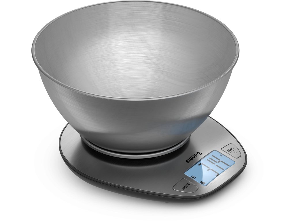 Kuchyňská váha do 5kg, přesnost 1g, jednotky kg, g, lb, ml, oz, s odnímatelnou nerezovou mísou (objem 1.8l), automatické vypnutí, funkce TARE (pro odečtení hmotnosti nádoby na navažování), indikátor přetížení a slabé baterie, nerezový materiál, LCD displej 28x27mm, rozměry 13x21.5x21.5cm, napájení 2xAAA (v balení), 3 roky záruka Kuchyňská váha Siguro SC510SS Kvalitní kuchyňská váha je při vaření a obzvláště pečení nutností. Proto by ve vaší kuchyni neměla chybět. Kuchyňská váha s nerezovou miskou Siguro SC510SS umožňuje vážit ingredience o hmotnosti až 5 kg s přesností 1 g. Váha zaujme nejen svými funkcemi, ale i nádherným nerezovým designem. Navíc se snadno udržuje – vážící plochu stačí otřít vlhkým hadříkem. Odnímatelná mísaSoučástí váhy je také odnímatelná nerezová mísa o objemu 1,8 l. Vážící plocha má vyvýšený okraj, tudíž miska neklouže dolů. S váhou Siguro SC510SS můžete vážit nejen suroviny, ale i měřit objem mléka či vody. Není vyplněn Alternativní text k fotografii! Podsvícený displejPřehledný displej jasně svítí pro ještě lepší čitelnost Není vyplněn Alternativní text k fotografii! Kovové těloNerezové provedení je odolné a elegantní Není vyplněn Alternativní text k fotografii! Solidní nosnostMůže se pochlubit nosnostíaž 5 kg Není vyplněn Alternativní text k fotografii! Maximální přesnostVáží s absolutní přesnostína 1 gram Velký podsvícený LCD displejAktuální hmotnost potravin zobrazuje velký přehledný displej, který je navíc vybavený modrým podsvícením, je tak zaručena skvělá čitelnost i za zhoršených světelných podmínek. Perfektně vybavená váhaVe výbavě nechybí ani funkce TARE pro odečtení hmotnosti nádoby a navažování. Jistě oceníte funkci automatického vypnutí při nečinnosti nebo indikátor slabé baterie a přetížení. Vše potřebné v baleníKuchyňská váha Siguro potřebuje pro své napájení dvě AAA baterie. Pro vaši maximální spokojenost jsme do balení přidali dvě baterie AlzaPower. Výhody: Odnímatelná nerezová mísa o objemu 1,8 l Velký LCD displej s modrým podsvícením zaručuje perfektní čitelnost Funkce vážení surovin, měření objemu mléka či vody a sčítání vah Protiskluzové nožičky pro vyšší stabilitu na pracovní ploše Automatické vypnutí Funkce TARE pro odečtení hmotnosti nádoby a navažování Snadná údržba Indikátor přetížení a slabé baterie Vlastnosti: Maximální nosnost: 5 kg Přesnost: 1 g Jednotky: kg ,g, lb, ml, oz Velikost LCD displeje: 58 × 27 mm Rozměry: 21,5 × 21,5 × 13 cm Hmotnost: 0,53 kg Proč vsadit na Siguro?Značka Siguro nabízí designově sladěné produkty, které vám dovolí vkusně zkombinovat vybavení domácnosti. Vše vyrábíme v certifikovaných, auditovaných továrnách, kde je zaručena kvalita i lidský přístup. Záleží nám také na vašem pohodlí, za každý kus ručíme prodlouženou zárukou na 3 roky a v případě potíží s produkty Siguro se můžete spolehnout na rychlou výměnu přímo na pobočkách. Není vyplněn Alternativní text k fotografii! Každý produkt nabídne něco navíc Není vyplněn Alternativní text k fotografii! Garantujeme okamžitou výměnu na pobočkách Není...Doplňkové parametry