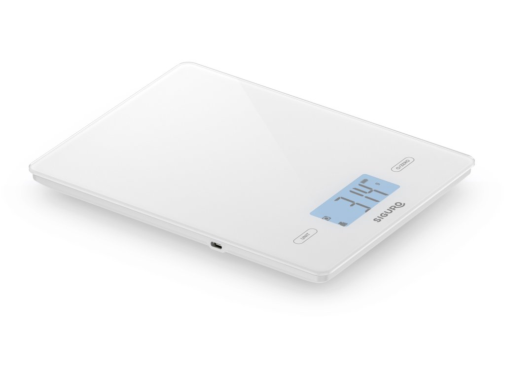Kuchyňská váha - do 5 kg, přesnost 1 g, jednotky kg, g, lb, ml, oz, možnost zavěšení, automatické vypnutí, funkce TARE (pro odečtení hmotnosti nádoby na navažování), indikátor přetížení a slabé baterie, skleněná vážící plocha, podsvícený LCD displej 58 × 27 mm, rozměry 21 × 16 × 1,9 cm, integrovaný nabíjecí akumulátor přes USB-C, 3 roky záruka Kuchyňská váha Siguro AKU SC710WKvalitní kuchyňská váha je při vaření a obzvláště pečení nutností. S kuchyňskou digitální váhou Siguro AKU SC710W zvážíte ingredience o hmotnosti až 5 kg s přesností 1 g. Váha se snadno udržuje – 3mm skleněnou vážicí plochu se zaoblenými rohy stačí otřít vlhkým hadříkem. Představuje také skvělou volbou do domácností, které berou ohled na životní prostředí – váha je totiž vybavena integrovanou ekologickou baterií.Perfektně vybavená váhaVe výbavě nechybí ani funkce TARE pro odečtení hmotnosti nádoby a navažování. Jistě oceníte funkci automatického vypnutí při nečinnosti nebo indikátor stavu nabití akumulátoru a přetížení.Vlastní akumulátorDobíjí se skrze USB, žádné vkládání bateriíZavěšeníVáhu je možné zavěsit na zeď a ušetřit místo na kuchyňské lincePodsvícený displejPřehledný displej jasně svítí pro ještě lepší čitelnostMaximální přesnostVáží s absolutní přesnostína 1 gramEkologické napájeníDigitální váha Siguro disponuje integrovaným ekologickým nabíjecím akumulátorem, který slibuje výdrž až 2 měsíce na jedno nabití. Toto řešení je nejen šetrné k životnímu prostředí, ale zejména šetří náklady a čas na výměnu klasických baterií. Akumulátor snadno dobijete pomocí dodávaného USB-C kabelu.Velký podsvícený LCD displejS váhou Siguro AKU SC710W můžete nejen vážit suroviny, ale i měřit objem mléka či vody. Aktuální hmotnost potravin zobrazuje velký přehledný displej, který je navíc vybavený modrým podsvícením, je tak zaručena skvělá čitelnost i za zhoršených světelných podmínek.Snadné skladováníVáhu Siguro AKU SC710W lze díky otvoru na spodní straně jednoduše zavěsit na zeď, váha tak nezabere téměř žádné místo a bude vždy po ruce.Výhody:3mm skleněná vážicí plocha - design se zaoblenými rohy, snadná údržbaEkologický nabíjecí akumulátor – vydrží až 2 měsíce na jedno nabití, USB kabel součástí baleníVelký LCD displej s modrým podsvícením – perfektní čitelnostFunkce vážení surovin, měření objemu mléka či vody a sčítání vahAutomatické vypnutíFunkce TARE pro odečtení hmotnosti nádoby a navažováníIndikátor přetížení a stavu nabití akumulátoruProtiskluzové nožičky pro vyšší stabilitu na pracovní plošeVlastnosti:Maximální nosnost: 5 kgPřesnost: 1 gJednotky: kg ,g, lb, ml, ozVelikost LCD displeje: 58 × 27 mmTloušťka vážící plochy: 3 mmRozměry: 21 × 16 × 1,9 cmHmotnost: 0,375 kgProč vsadit na Siguro?Značka Siguro nabízí designově sladěné produkty, které vám dovolí vkusně zkombinovat vybavení domácnosti. Vše vyrábíme v certifikovaných, auditovaných továrnách, kde je zaručena kvalita i lidský přístup. Záleží nám také na vašem pohodlí, za každý kus ručíme prodlouženou zárukou na 3 roky a v případě potíží s produkty Siguro se můžete spolehnout na rychlou výměnu přímo na pobočkách.Každý produkt nabídne něco navícGarantujeme okamžitou výměnu na pobočkáchZískáte nadstandardní záruku prodlouženou na 3 rokyVyrobeno pouze v ověřených a kontrolovaných továrnáchDoplňkové parametry